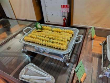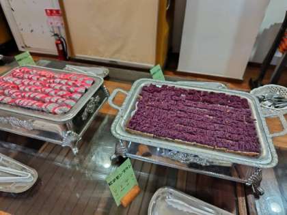 4月12月(土)晩御飯の準備ができました。バイキングの美味しい料理が揃いました。22℃、風が強くなってきました。これから雨が降るようです。