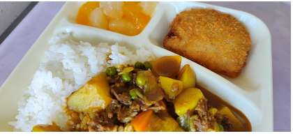 今日の給食は、みなさんが中学生になったお祝いの献立です。2,3年生のみなさんも1年生の入学と自分たちの進級を一緒にお祝いしましょう。
