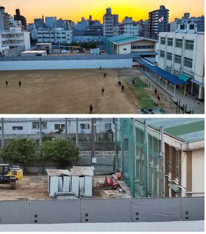 体育館備品の搬出を終え、西側体育倉庫が撤去されました。