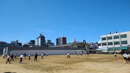 運動場が狭くなりましたが、昼休みは変わらずに走り回っています。