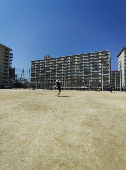 先週に引き続き、大阪市春季総体ブロック予選会、ソフトテニスの部が行われています。