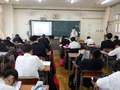 4月28日(月)2年生の授業の様子です。頑張っています。2年1組家庭科、2年2組理科、2年3組英語の授業の様子です。