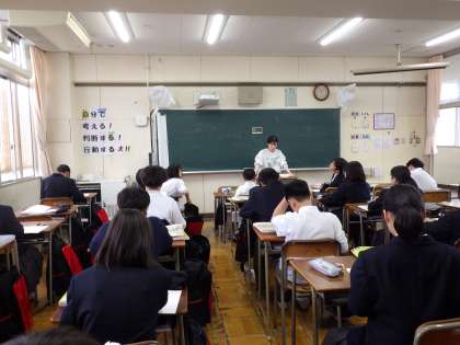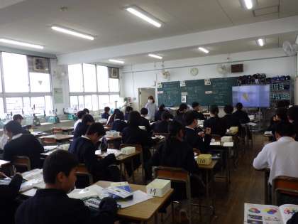5月2日(金)朝からの雨で少しい肌寒い朝です。1年生の授業の様子です。1組理科、2組数学、3組美術の様子です。