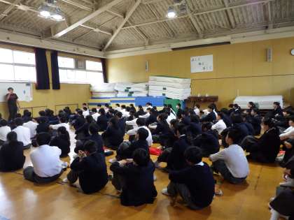 5月2日(金)1年生は格技室で学年集会です。5月19日、20日に実施する中間テストに向けてテストの受け方などの話です。