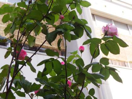 5月8日(木)朝から爽やかな春の風が流れています。学校東側にきれいなバラの花が咲いています。 校長