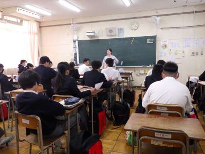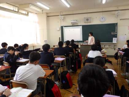 5月12日(月)2年生の授業の様子です。1組家庭科、2組理科、3組英語の様子です。頑張っています。