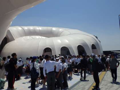 5月14日(水)晴天の下、2年生は関西万博に校外学習に行きました。楽しい一日でした。校外学習の様子です。