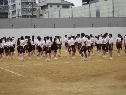 5月16日(金)2年生は運動会に向けての学年練習です。行進と集団演技の練習をしています。