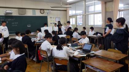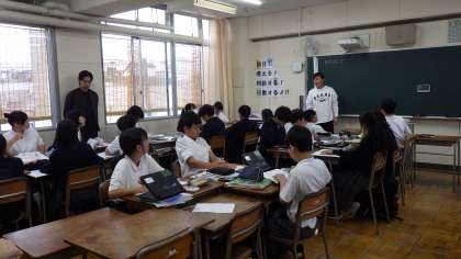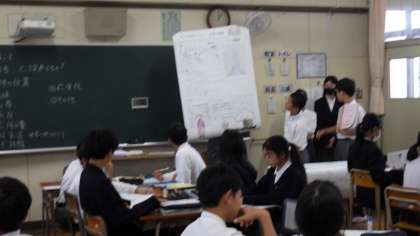 6月3日(火)1年生2組の社会科での研究授業です。授業力の向上を目的とした研究授業です。