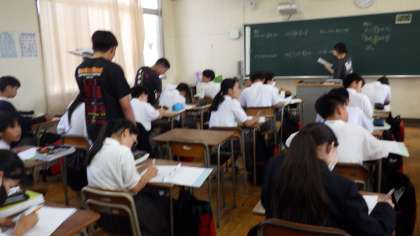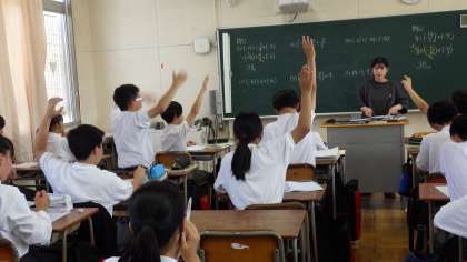 6月4日(水)教員の授業力の向上を目的とした研究授業を行いました。今日は校区小学校から校長先生をはじめとして先生方にもお越しいただきました。お忙しい中ありがとうございました。1組の数学の様子です。