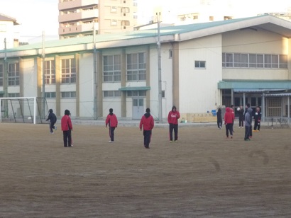【写真】寒さにも負けず、朝から練習に取組むラグビー部員