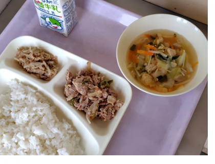 給食で使っているツナ缶の材料は、まぐろと綿実油、食塩です。