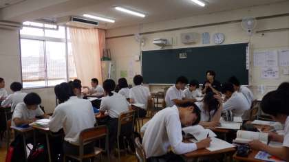 6月9日(月)梅雨入り前の月曜日、子どもたちは元気に頑張っています。1組数学、2組英語3組理科の様子です。
