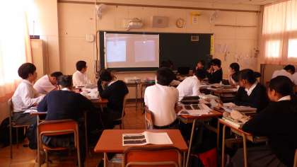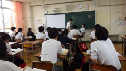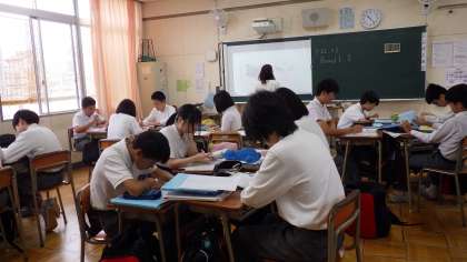 6月12日(木)今日は梅雨の中休み、涼しい日をです。3年1組の英語、2組の国語、3組の理科の様子です。