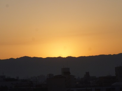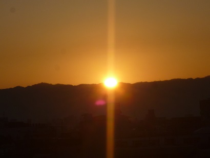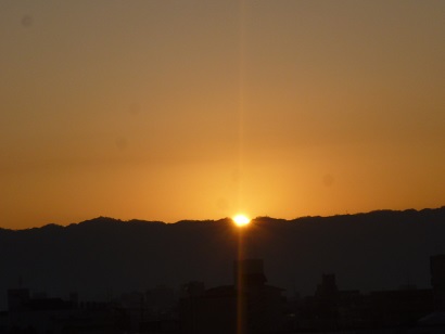 【写真】校舎屋上から見える生駒山から昇る朝日