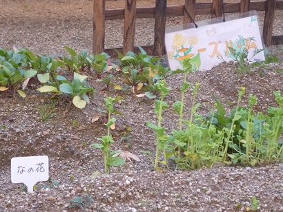 昨年の11月に、ニーズルームの生徒たちが植えた種「菜の花」「ラディッシュ」などが成長しています。
