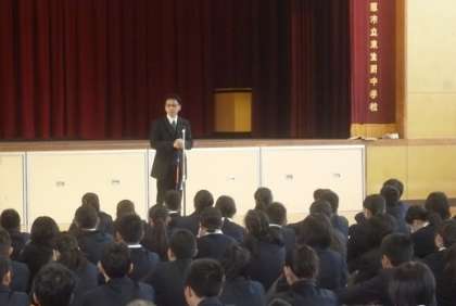 毎日放送のスタッフの方から、先日行われたラグビー部創部50周年記念行事のDVDが送られてきました。そこに添えられていた手紙には、「東生野中学校の生徒さんは一人一人誰もが挨拶がしっかりできていて気持ちがよい。その姿に感心しました。」という内容でした。校長先生が常日頃からおしゃる「挨拶がしっかりできる学校にしよう。」という言葉を、生徒たちが実践してくれていることに、校長先生も喜んでおられました。