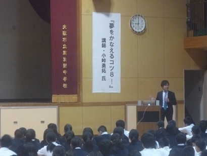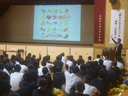 土曜授業に小峠勇拓氏をお招きし、『夢をかなえるコツ8!』というテーマで生徒・保護者・地域の方の前で講演をしていただきました。