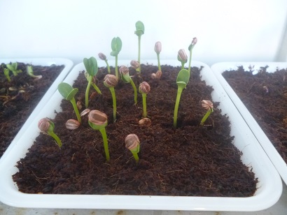 昨日の「ひまわり」「あさがお」がたった1日で、ぐんぐん成長していました。