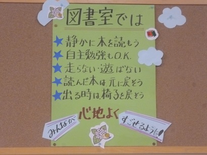 毎週火曜日に、学校図書館補助員の篠木先生に来ていただき、館内整備をしていただいてます。図書館ボランティアさんも毎週水・金に来ていただいてます。
