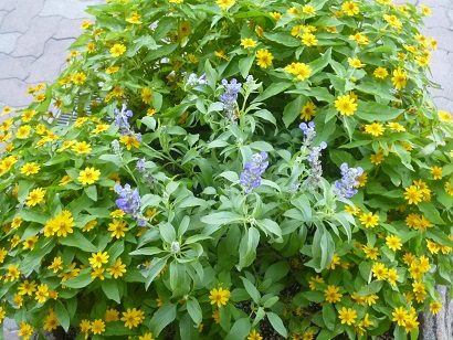 【下の写真】ブルーサルビアとメランポジウム