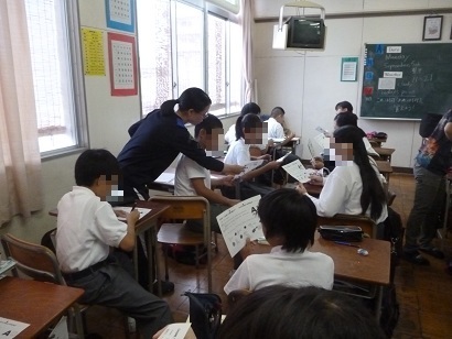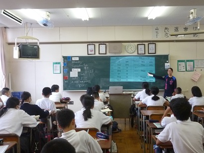 導入では、帯活動としてビンゴゲームをしながら英単語を学び、授業ではパソコンとプロジェクターを上手く活用したビジュアル教材を使いながら、生徒が意欲的に取組めるよう工夫されていました。