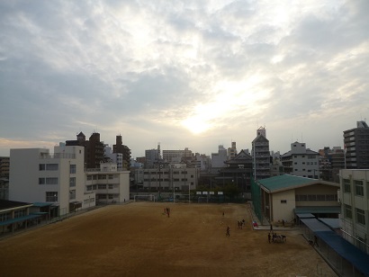 グランドでは、練習を終えたラグビー部が整地をしています。