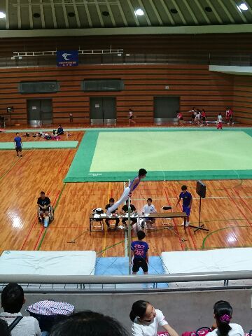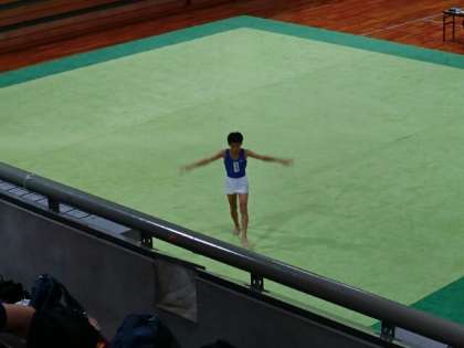大阪市中央体育館では体操競技が行われています。一生懸命の迫真の演技に、観客も魅了されます。そして、メリハリあるキビキビした行動に観ている人達の背筋も自然とピーンと伸びます。