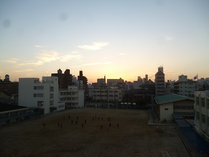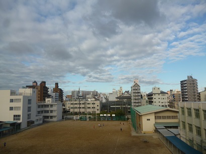 秋空の下、ラグビー部の練習が朝からも夕方も行われています。