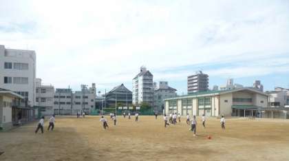 昼休みのチャイムとともに、生徒たちは競い合うように運動場に出てきます。貸出ボールを使って、元気に運動場を走り回り、あちらこちらでグループごとに楽しんでいます。