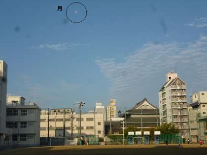 19日(水)西の空を見上げると、うっすらと白い月が残っていました。