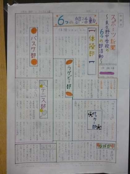 【下の写真】スポーツ新聞〔保健体育科女子 1年生〕