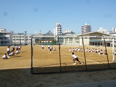 1年生の体育の授業ではサッカーを練習しています。