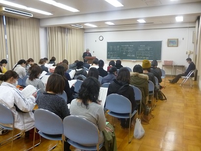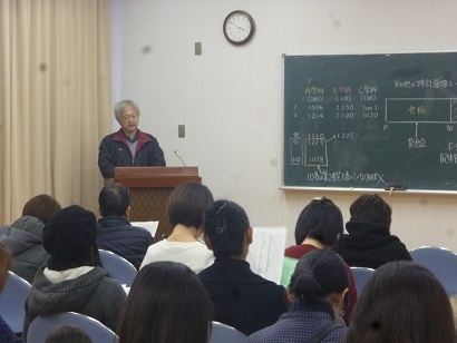 3年生の保護者は3か月後に迫った私立入試、その後の公立学力検査に向けての流れと手順について、1・2年生の保護者も受験の仕組みについて耳を傾けました。