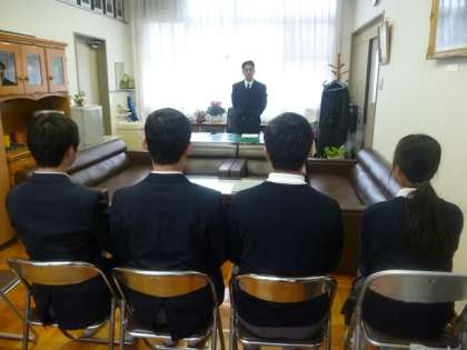 緊張の面持ちで校長室に順番に入り、校長先生から様々な質問を受けました。ハキハキと答えていて、担任の先生による事前指導の賜物だと感じました。