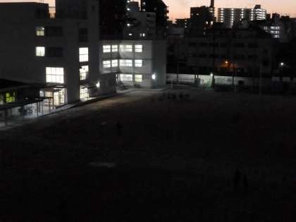 グランドではラグビー部が基礎体力をつけるためのトレーニングをし、サッカー部は練習が終わりトンボをかけています。