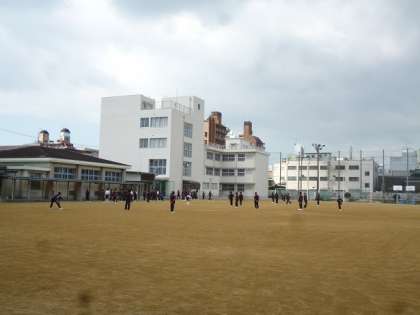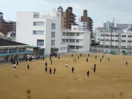 1年生は、男女別クラス対抗のキックベースボールを行いました。