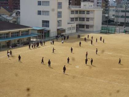 昼から1年生は運動場で再びキックベースボールをおこなっています。