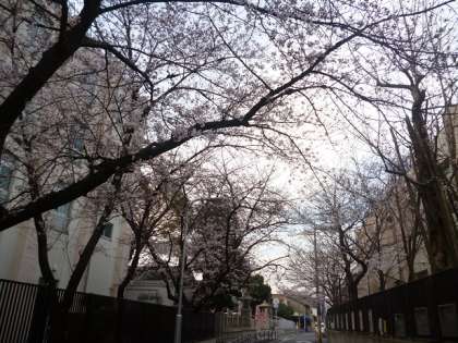 小路小学校を貫く道路の両脇にソメイヨシノの桜が満開を迎えようとしています。入学式にはちょうど満開になりそうです。