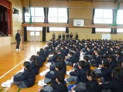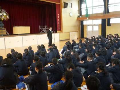 生徒指導主事からは「中学生としての心構え」(中の写真)