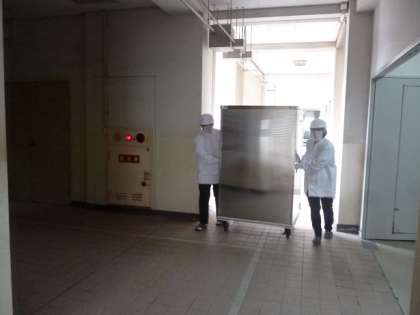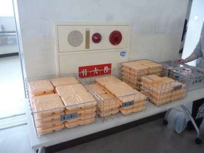 【中の写真】各階に給食を運ぶ配膳員さん。