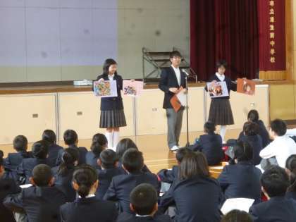 1年生が部活動を決めるのあたっての紹介を、2・3年生が行いました。