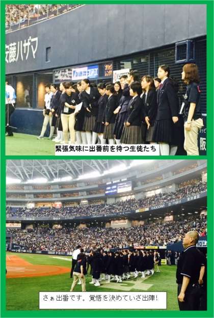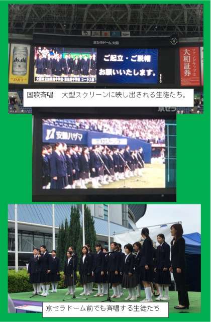 5月6日(土)のオリックスvs日本ハムのゲーム前の開会式で、コーラス部の生徒が加美中学校の生徒と一緒に国歌斉唱を行いました。