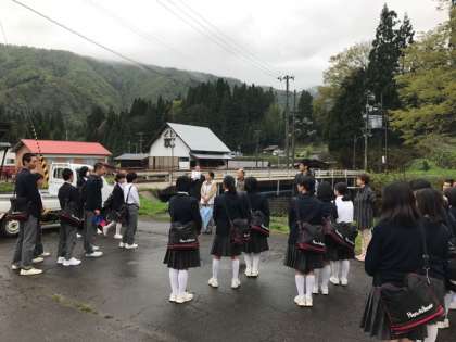 > 山道を30分程越えたところで、旧いとしろシャーロットタウンでの入村式を行いました。