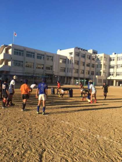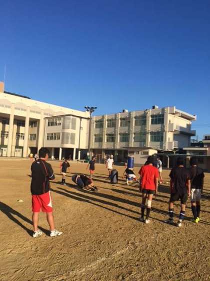 ラグビー部は、明日大阪府春季総体ラグビーの部1回戦に出場します。試合前日の恒例であるタックル練習に気合い一杯入っています。