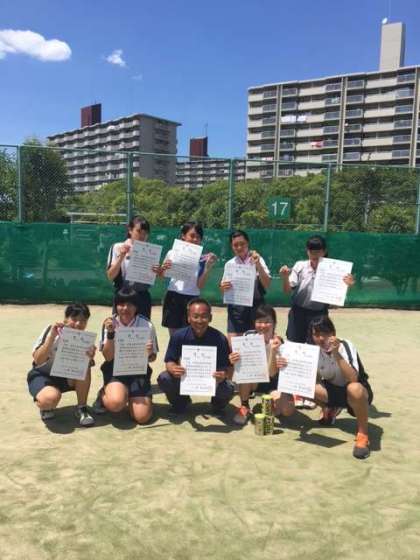 閉会式で、大阪市準優勝の賞状をいただきました。その後、出場した生徒全員での記念写真です。おめでとう!