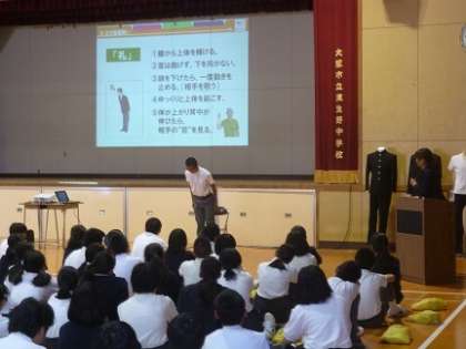 正しい「起立」「礼」「着席」を教えていただき、