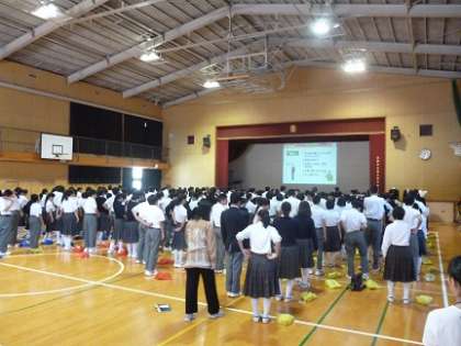 代表生徒と全員で実技をおこないました。