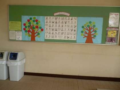 生徒達が積極的に本を読み、仲間に伝えるために一枚一枚の「葉っぱ」に自分が書いた本の感想を書いて貼り付けていきます。多くの本を読んだ人には「りんご」のカードにメッセージを書いていきます。