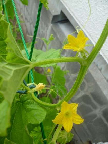 今年も南側道路に面した校舎の壁を利用して、ゴーヤを育てています。